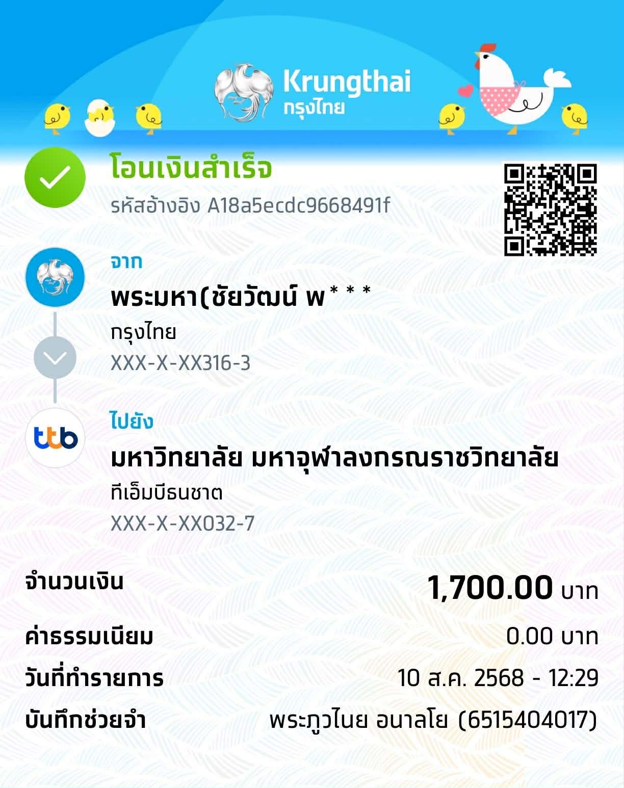 QR Code สำหรับสแกนเข้าร่วมพิธี * เข้าพิธีประสาทปริญญาวันที่ 6 ธันวาคม 2568 |