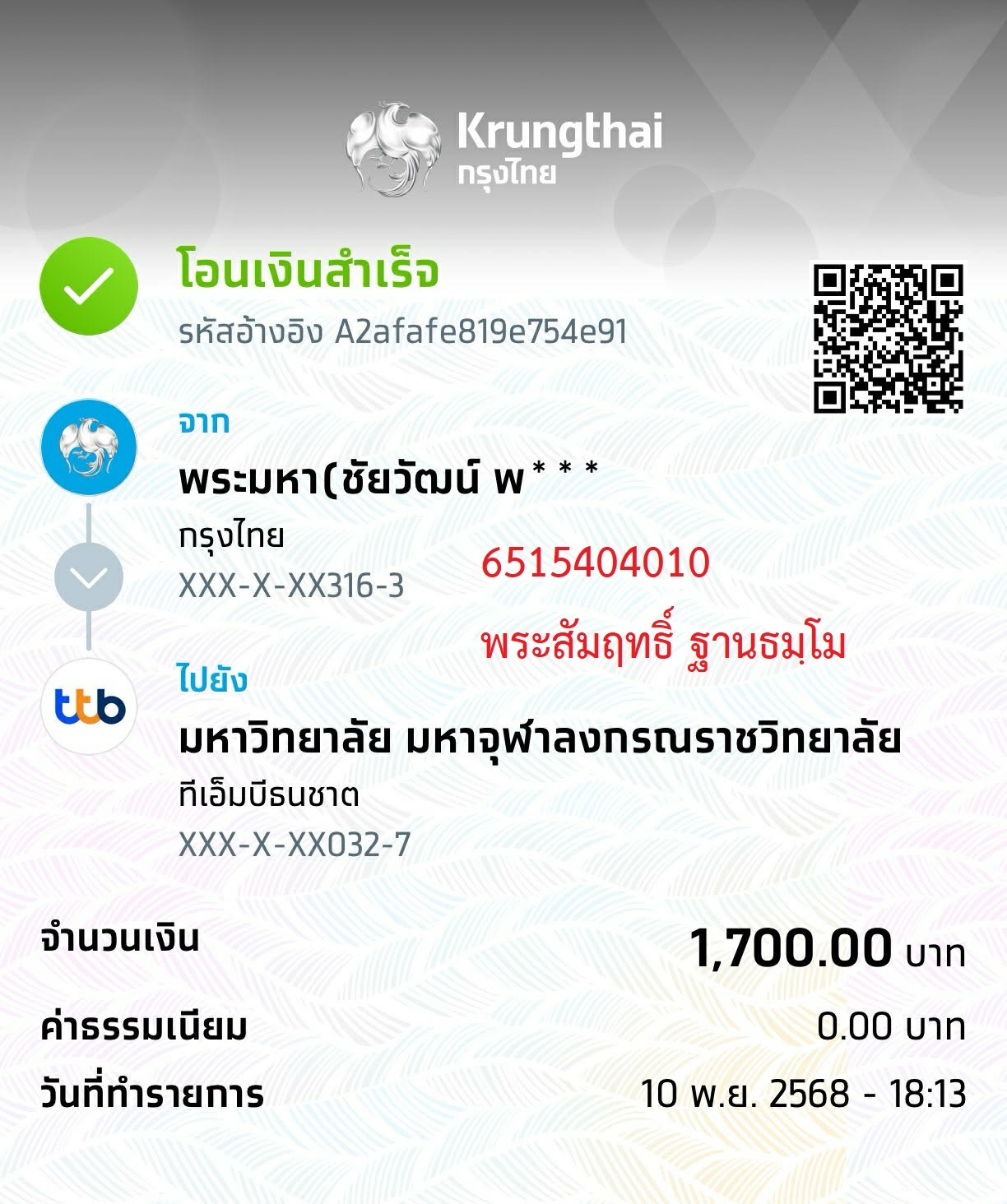 | รหัสนิสิต : 6515404010 | ชื่อ : พระสัมฤทธิ์ | ฉายา: ฐานธมฺโม | นามสกุล: เสียงเสนาะ |