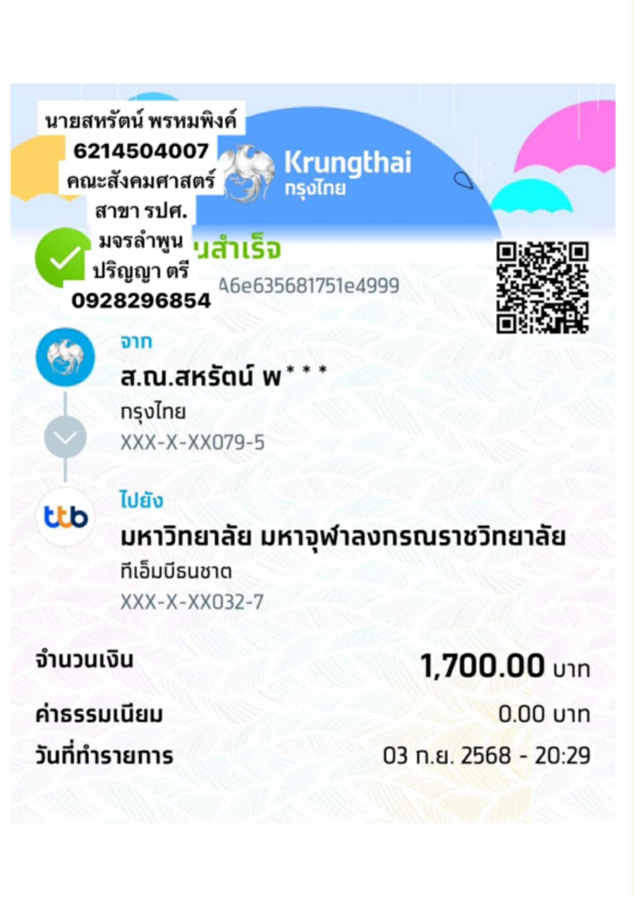 * เข้าพิธีประสาทปริญญาวันที่ 6 ธันวาคม 2568