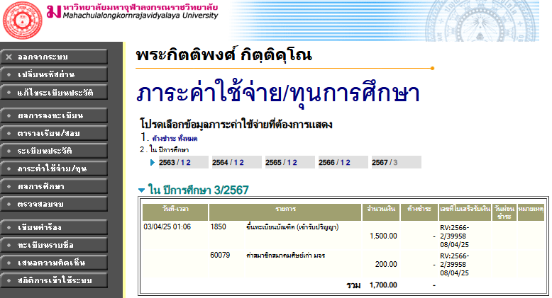 | สถานะเข้าพิธีประสาทปริญญา : บรรพชิต | ระดับ : ปริญญาตรี | สังกัดคณะ: คณะสังคมศาสตร์ | สาขาวิชา: รัฐประศาสนศาสตรบัณฑิต |