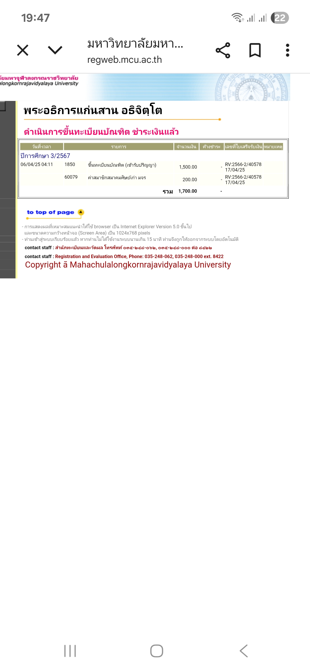 | สถานะเข้าพิธีประสาทปริญญา : บรรพชิต | ระดับ : ปริญญาตรี | สังกัดคณะ: คณะสังคมศาสตร์ | สาขาวิชา: รัฐประศาสนศาสตรบัณฑิต |