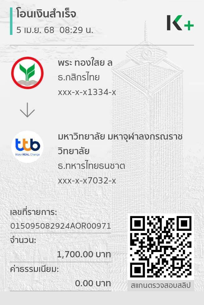 ใบเสร็จรับเงิน/เอกสารยืนยันการชำระเงิน(แนบเอกสาร)