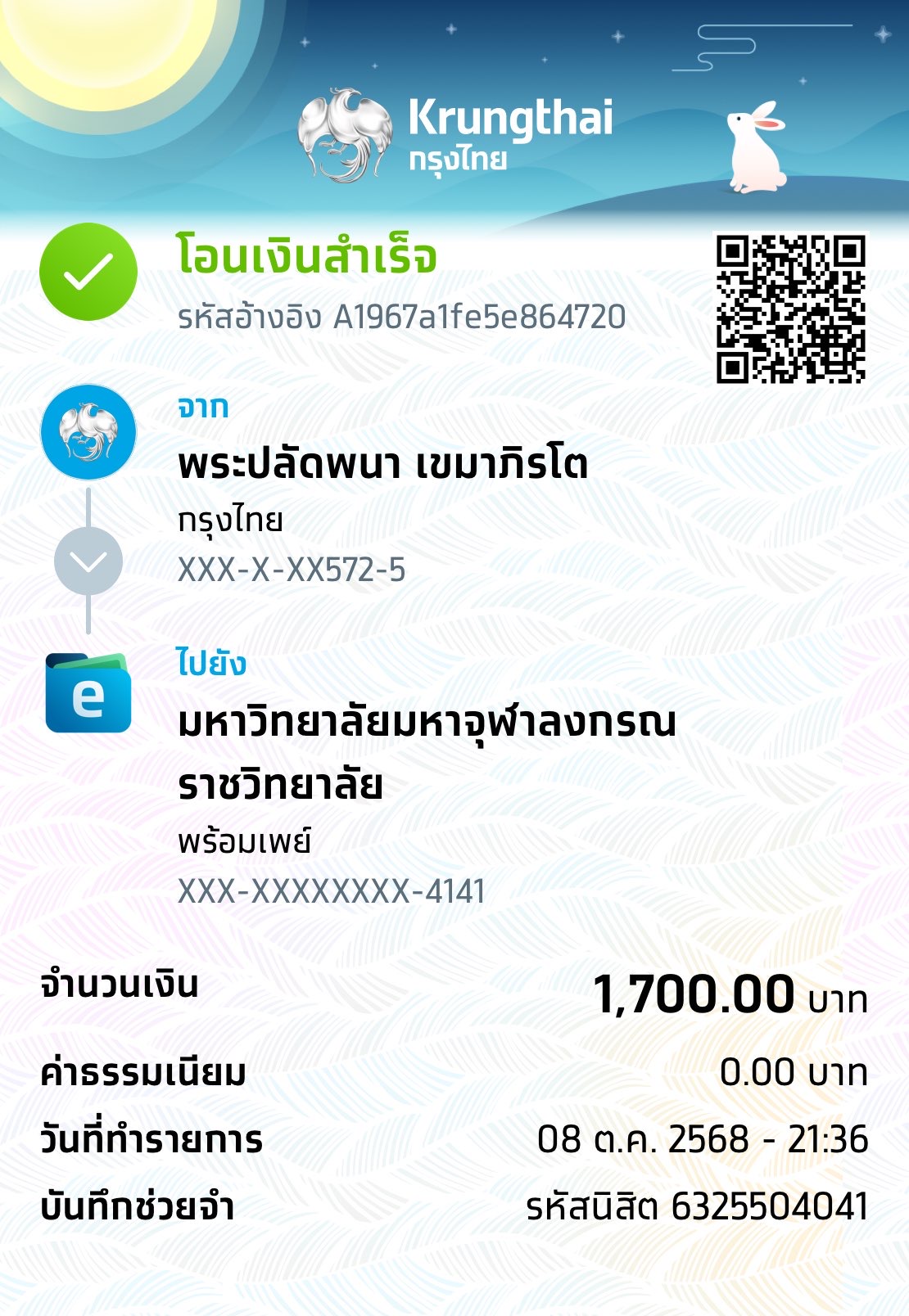 QR Code สำหรับสแกนเข้าร่วมพิธี * เข้าพิธีประสาทปริญญาวันที่ 6 ธันวาคม 2568 |