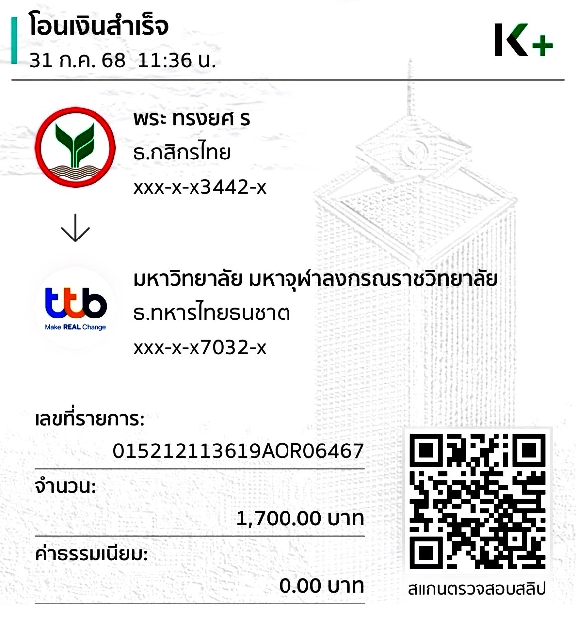 QR Code สำหรับสแกนเข้าร่วมพิธี * เข้าพิธีประสาทปริญญาวันที่ 6 ธันวาคม 2568 |