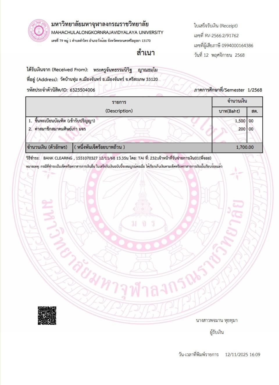 | รหัสนิสิต : 6323504006 | ชื่อ : พระครูจันทธรรมนิวิฐ | ฉายา: ญาณธมฺโม | นามสกุล: สุขสมบัติ |