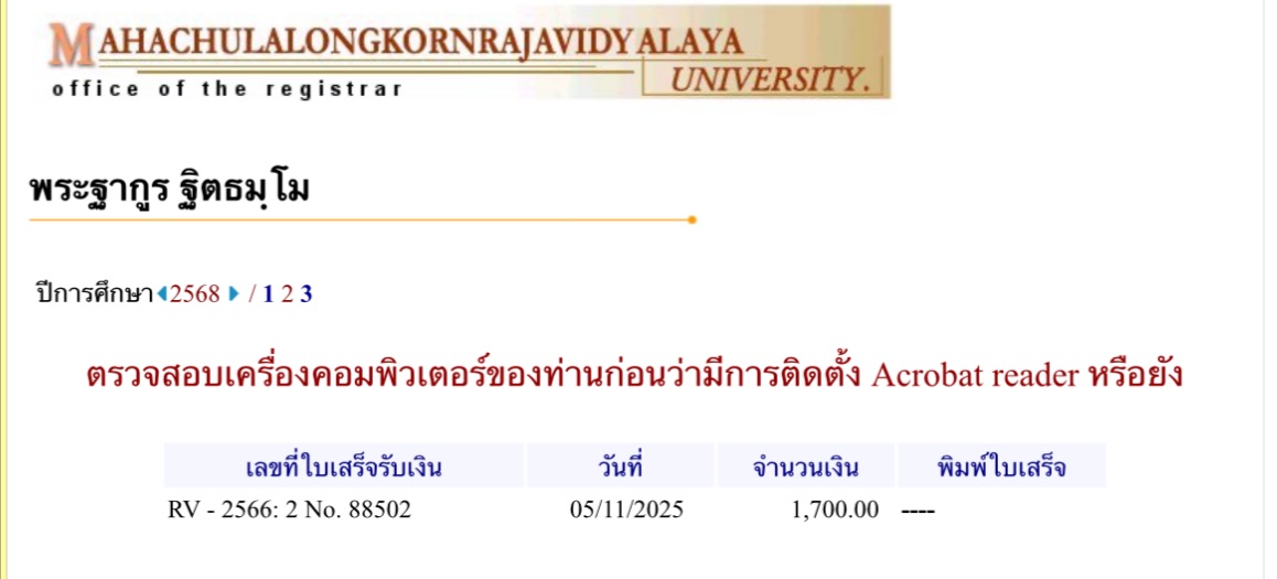 | สถานะเข้าพิธีประสาทปริญญา : บรรพชิต | ระดับ : ปริญญาตรี | สังกัดคณะ: คณะสังคมศาสตร์ | สาขาวิชา: รัฐประศาสนศาสตรบัณฑิต |