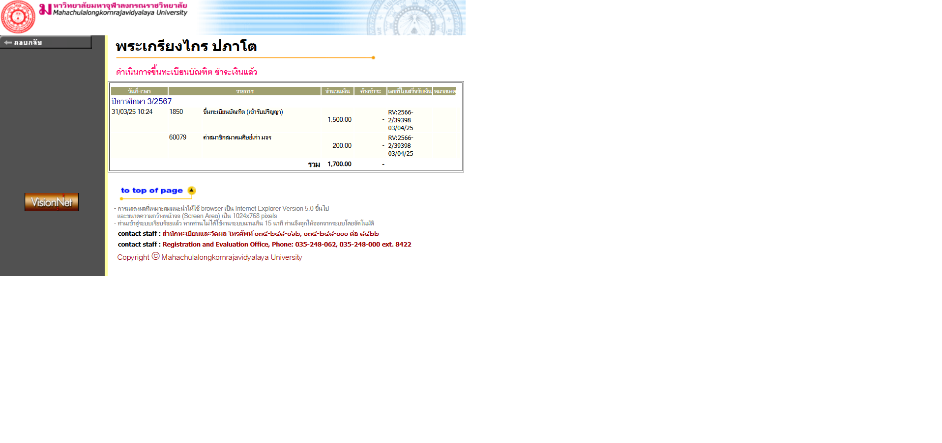 | รหัสนิสิต : 6328504001 | ชื่อ : พระเกรียงไกร | ฉายา: ปภาโต | นามสกุล: เสนสุวรรณ |