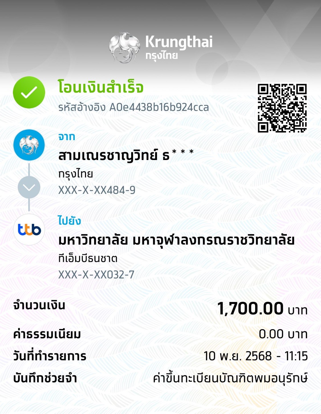 QR Code สำหรับสแกนเข้าร่วมพิธี * เข้าพิธีประสาทปริญญาวันที่ 6 ธันวาคม 2568 |