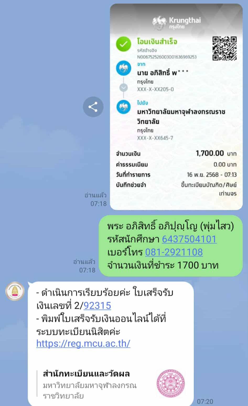 | รหัสนิสิต : 6437504101 | ชื่อ : พระอภิสิทธิ์ | ฉายา: อภิปุญฺโญ | นามสกุล: พุ่มไสว |