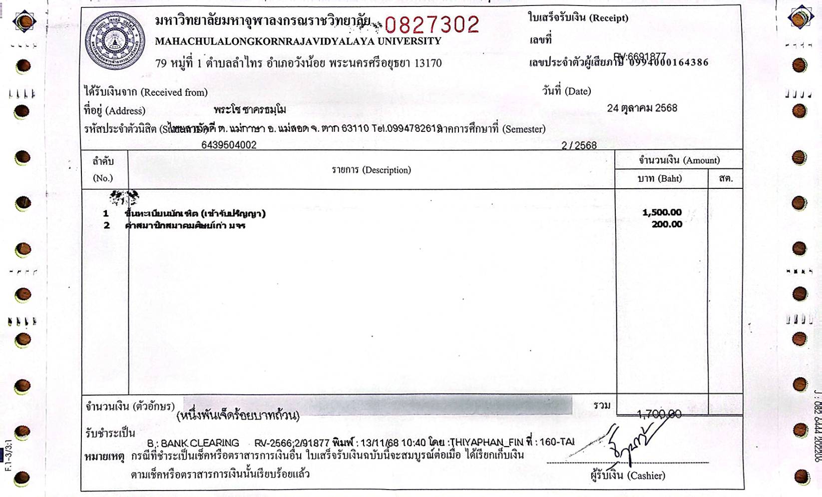 | รหัสนิสิต : 6439504002 | ชื่อ : พระโซ | ฉายา: ชาครธมฺโม | นามสกุล: - |