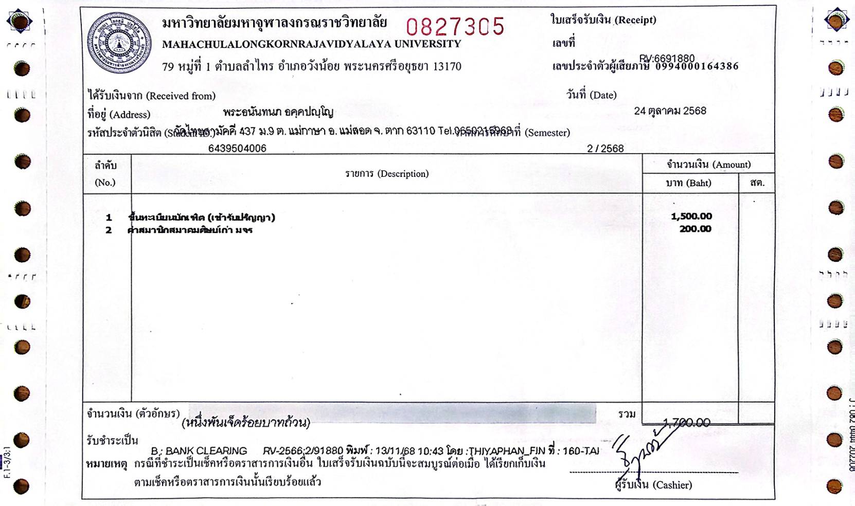 | รหัสนิสิต : 6439504006 | ชื่อ : พระอนันทนภ | ฉายา: อคฺคปญฺโญ | นามสกุล: แก้วมณีโชติกุล |