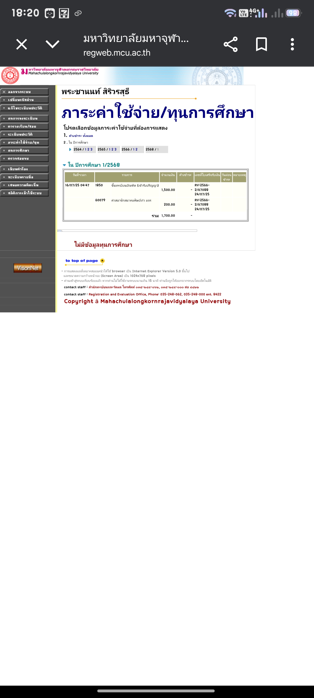 | สถานะเข้าพิธีประสาทปริญญา : บรรพชิต | ระดับ : ปริญญาตรี | สังกัดคณะ: คณะสังคมศาสตร์ | สาขาวิชา: รัฐศาสตรบัณฑิต |