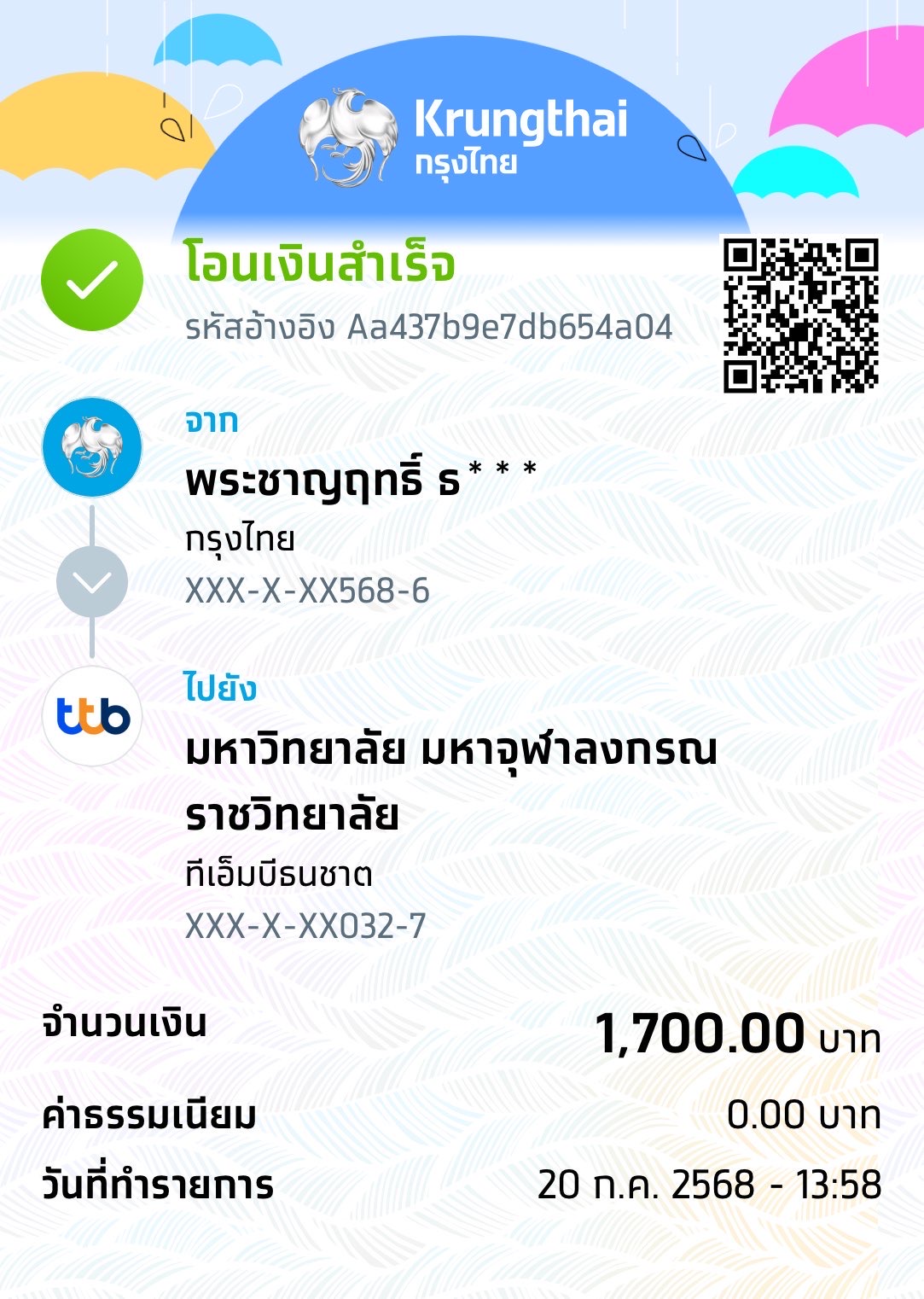 QR Code สำหรับสแกนเข้าร่วมพิธี * เข้าพิธีประสาทปริญญาวันที่ 6 ธันวาคม 2568 |