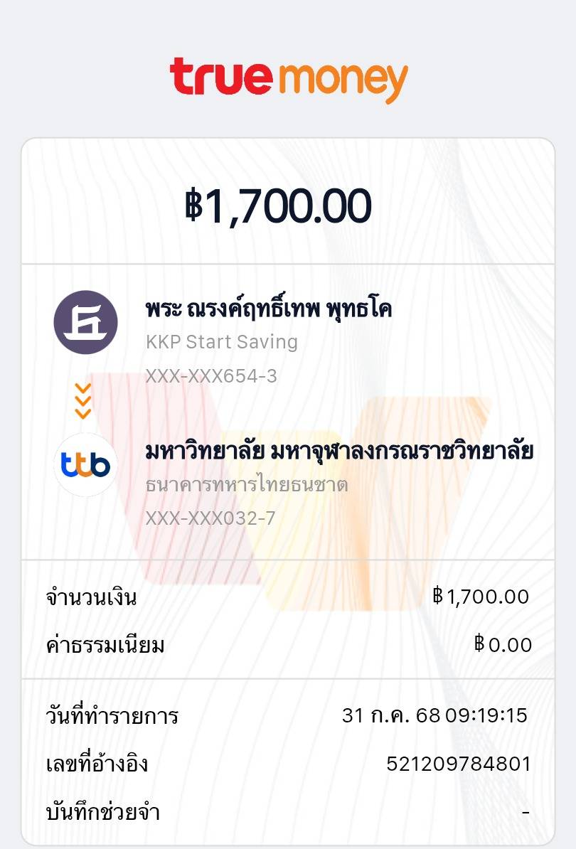 | สถานะเข้าพิธีประสาทปริญญา : บรรพชิต | ระดับ : ปริญญาตรี | สังกัดคณะ: คณะสังคมศาสตร์ | สาขาวิชา: การจัดการเชิงพุทธ |