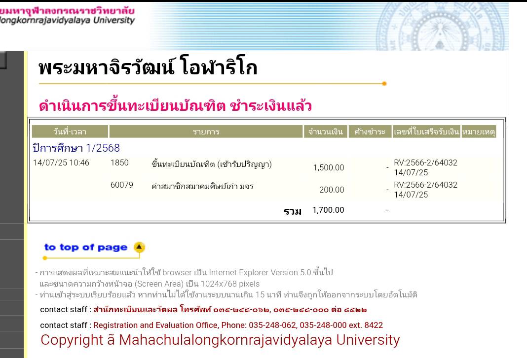 | สถานะเข้าพิธีประสาทปริญญา : บรรพชิต | ระดับ : ปริญญาตรี | สังกัดคณะ: คณะสังคมศาสตร์ | สาขาวิชา: การจัดการเชิงพุทธ |