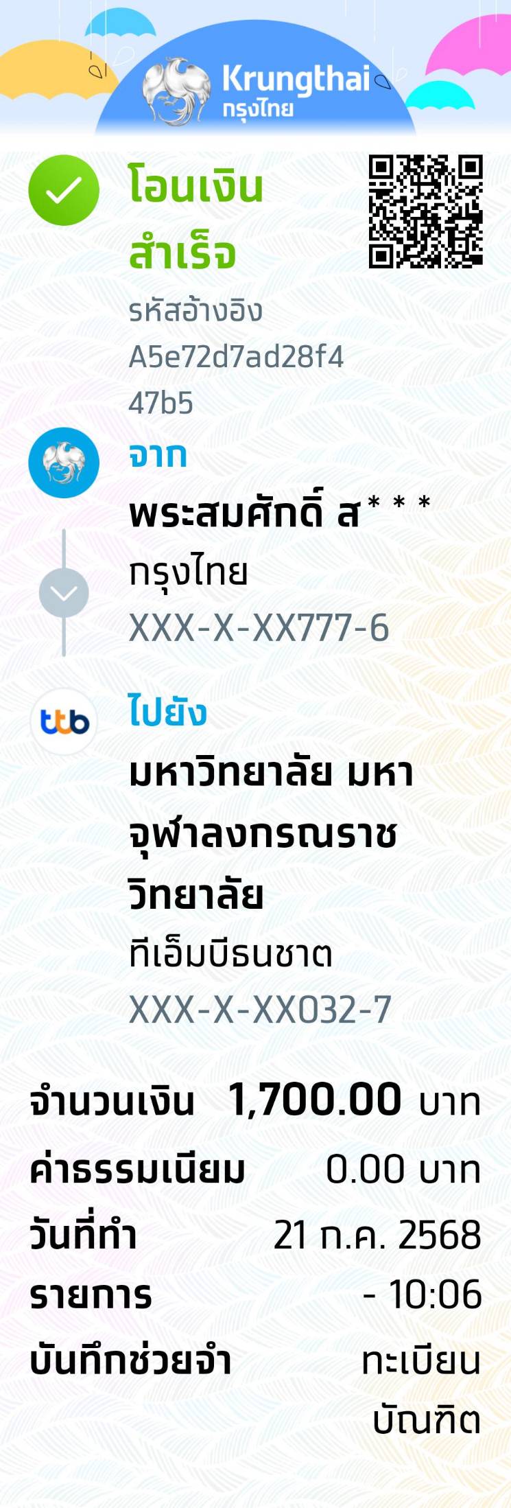 QR Code สำหรับสแกนเข้าร่วมพิธี * เข้าพิธีประสาทปริญญาวันที่ 6 ธันวาคม 2568 |