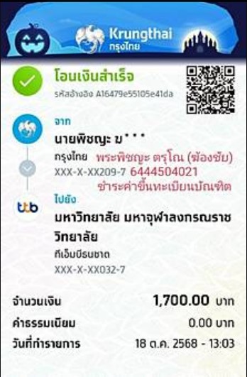 | รหัสนิสิต : 6444504024 | ชื่อ : พระพิชญะ | ฉายา: ตรุโณ | นามสกุล: ฆ้องชัย |