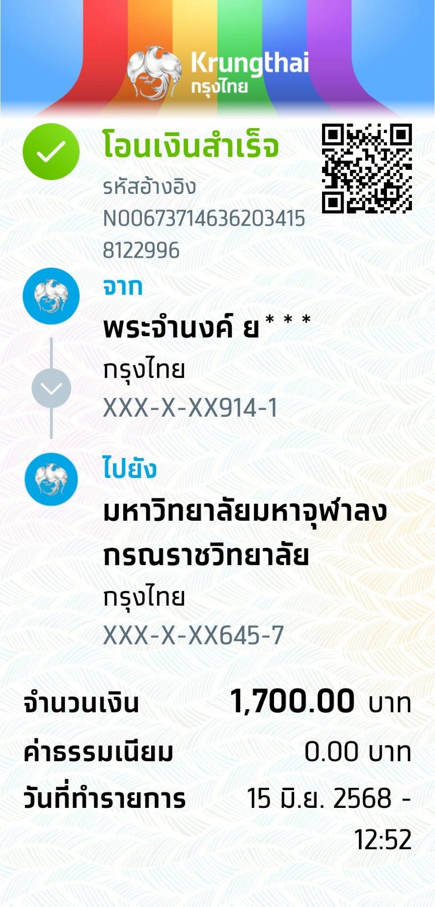 | รหัสนิสิต : 6345504002 | ชื่อ : พระจำนงค์ | ฉายา: ยสปาโล | นามสกุล: ภู่เทศ |