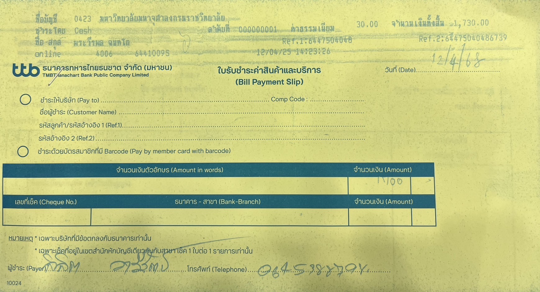 | รหัสนิสิต : 6447504048 | ชื่อ : พระวีรพล | ฉายา: ฉนฺทโก | นามสกุล: อยู่สุข |