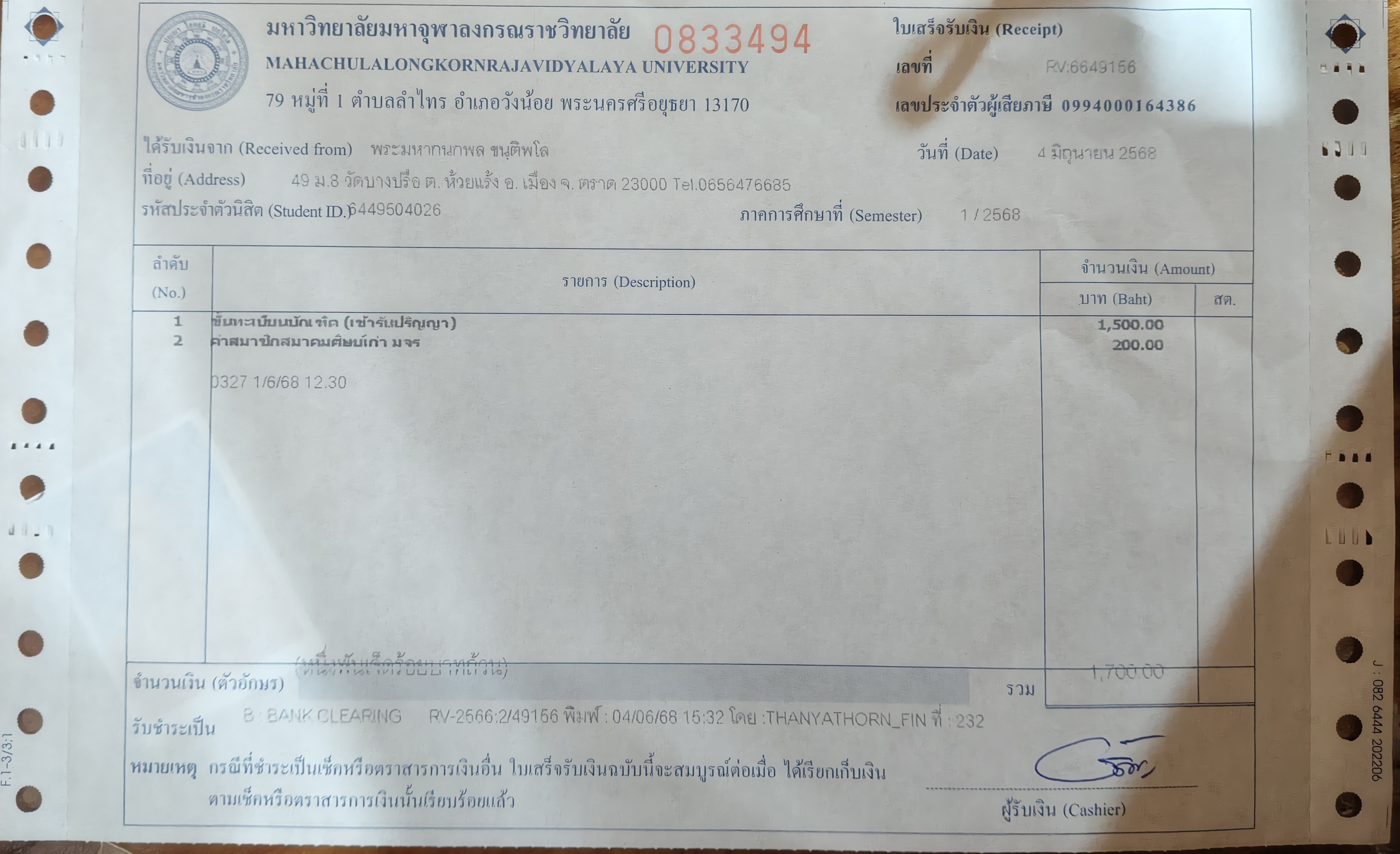 | สถานะเข้าพิธีประสาทปริญญา : บรรพชิต | ระดับ : ปริญญาตรี | สังกัดคณะ: คณะสังคมศาสตร์ | สาขาวิชา: รัฐประศาสนศาสตรบัณฑิต |