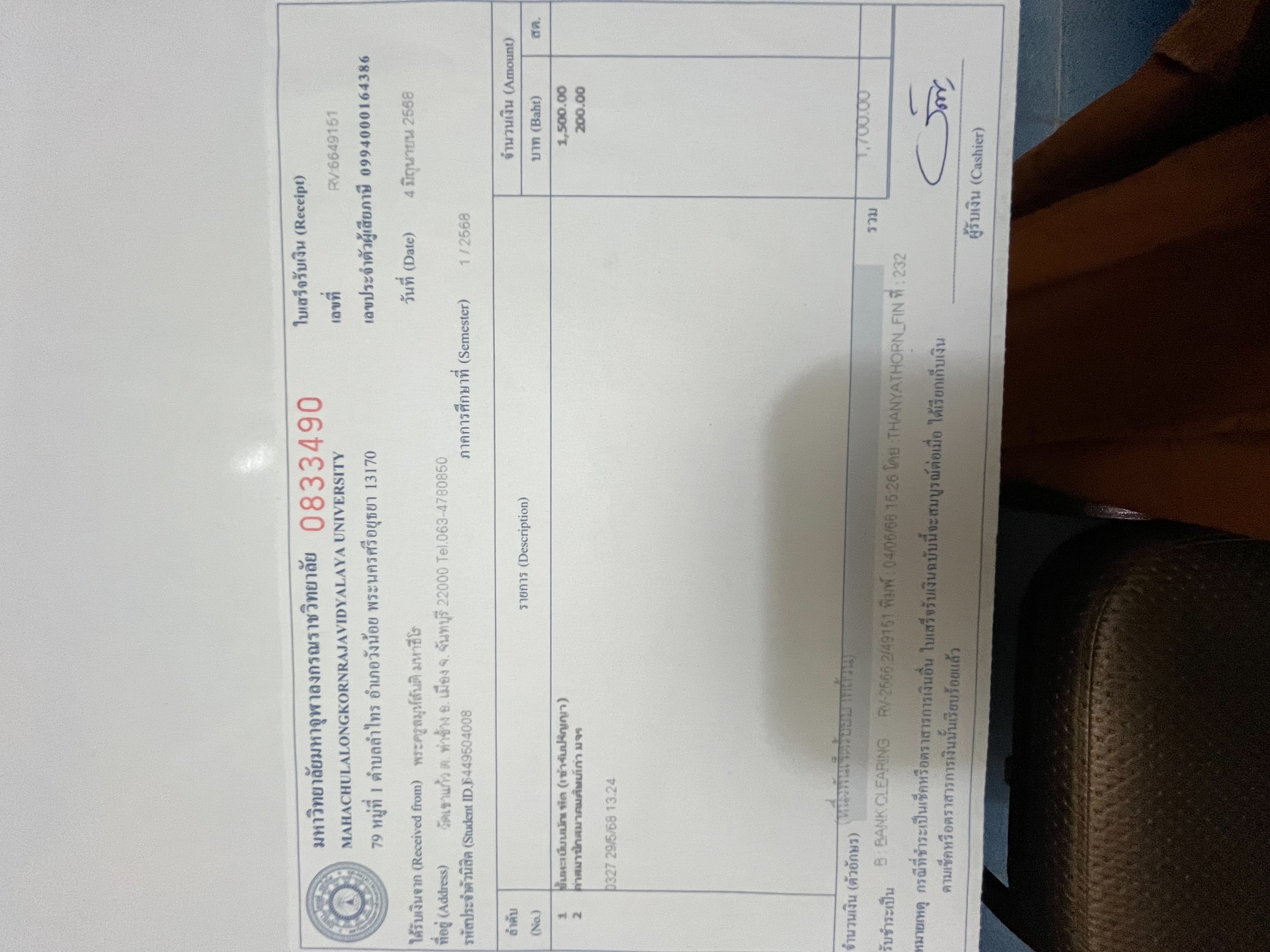 ใบเสร็จรับเงิน/เอกสารยืนยันการชำระเงิน(แนบเอกสาร)