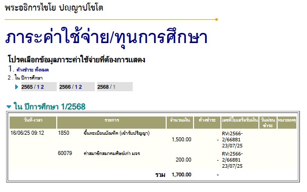 | สถานะเข้าพิธีประสาทปริญญา : บรรพชิต | ระดับ : ปริญญาตรี | สังกัดคณะ: คณะสังคมศาสตร์ | สาขาวิชา: การจัดการเชิงพุทธ |