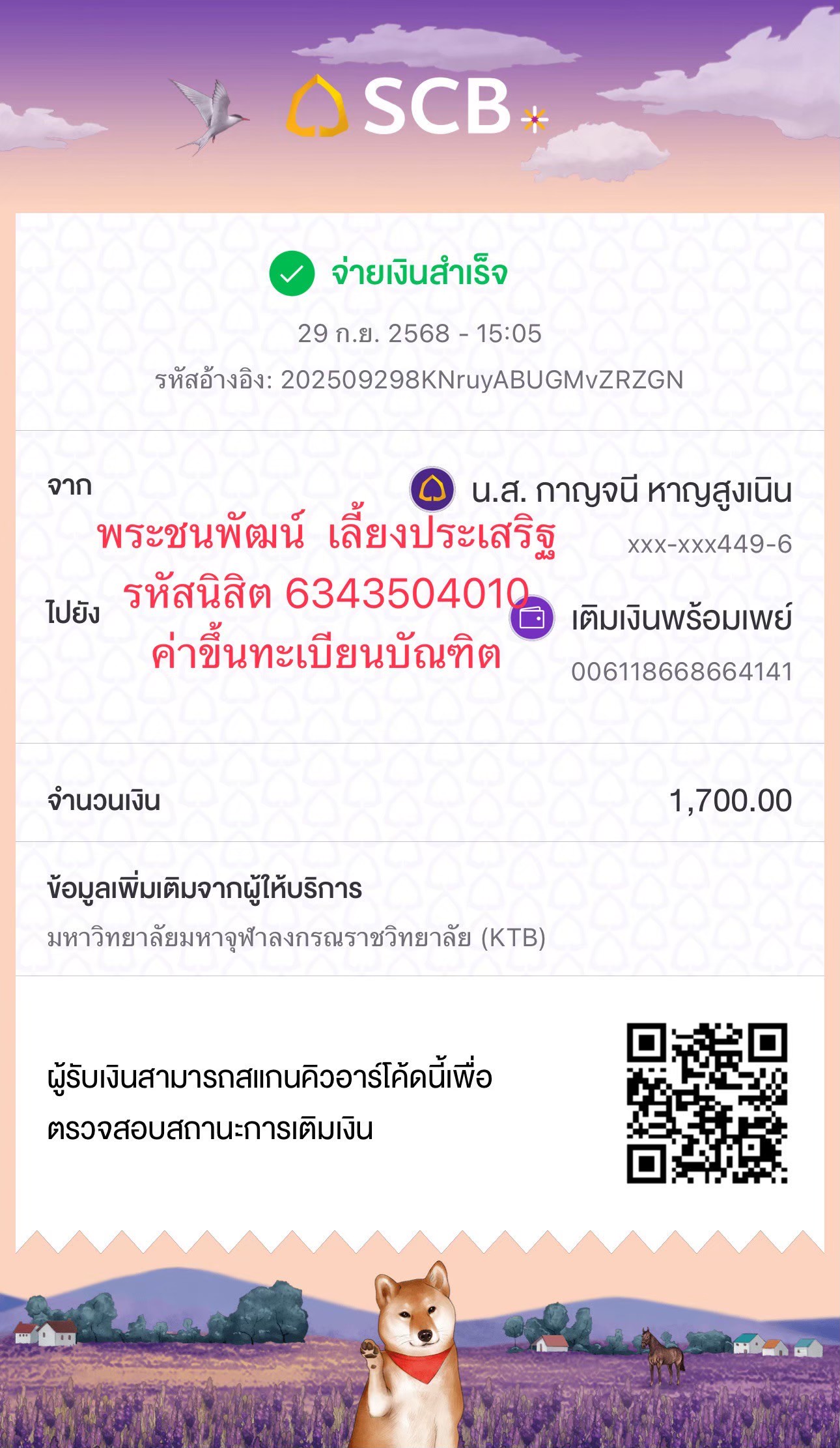 | รหัสนิสิต : 6343504010 | ชื่อ : พระชนพัฒน์ | ฉายา: กิตฺติวณฺโณ | นามสกุล: เลี้ยงประเสริฐ |