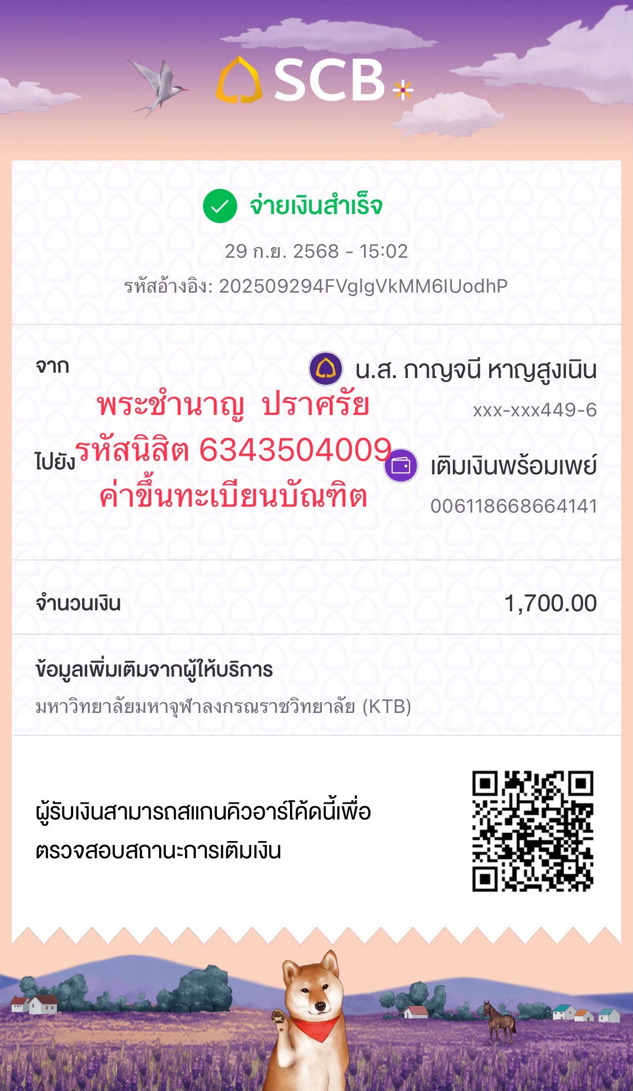 รหัสนิสิต : 6343504009 ชื่อ : พระชำนาญ ฉายา: ฐานธมฺโม นามสกุล: ปราศรัย