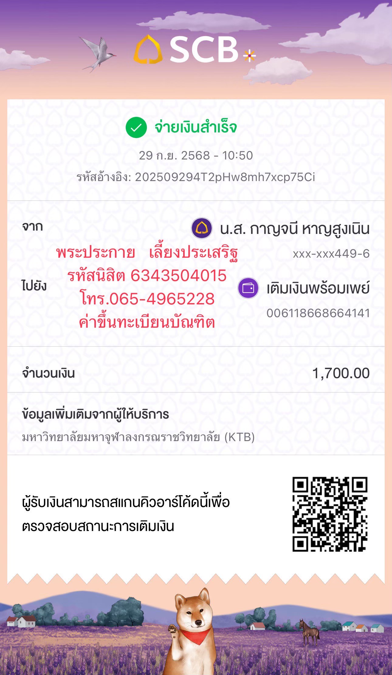 | รหัสนิสิต : 6343504015 | ชื่อ : พระประกาย | ฉายา: โชติโก | นามสกุล: เลี้ยงประเสริฐ |