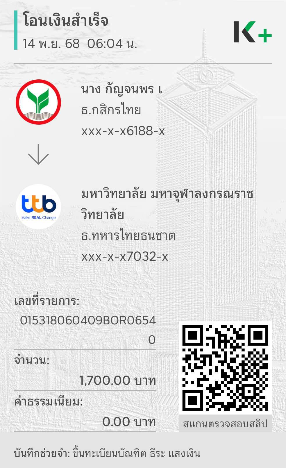 * เข้าพิธีประสาทปริญญาวันที่ 6 ธันวาคม 2568