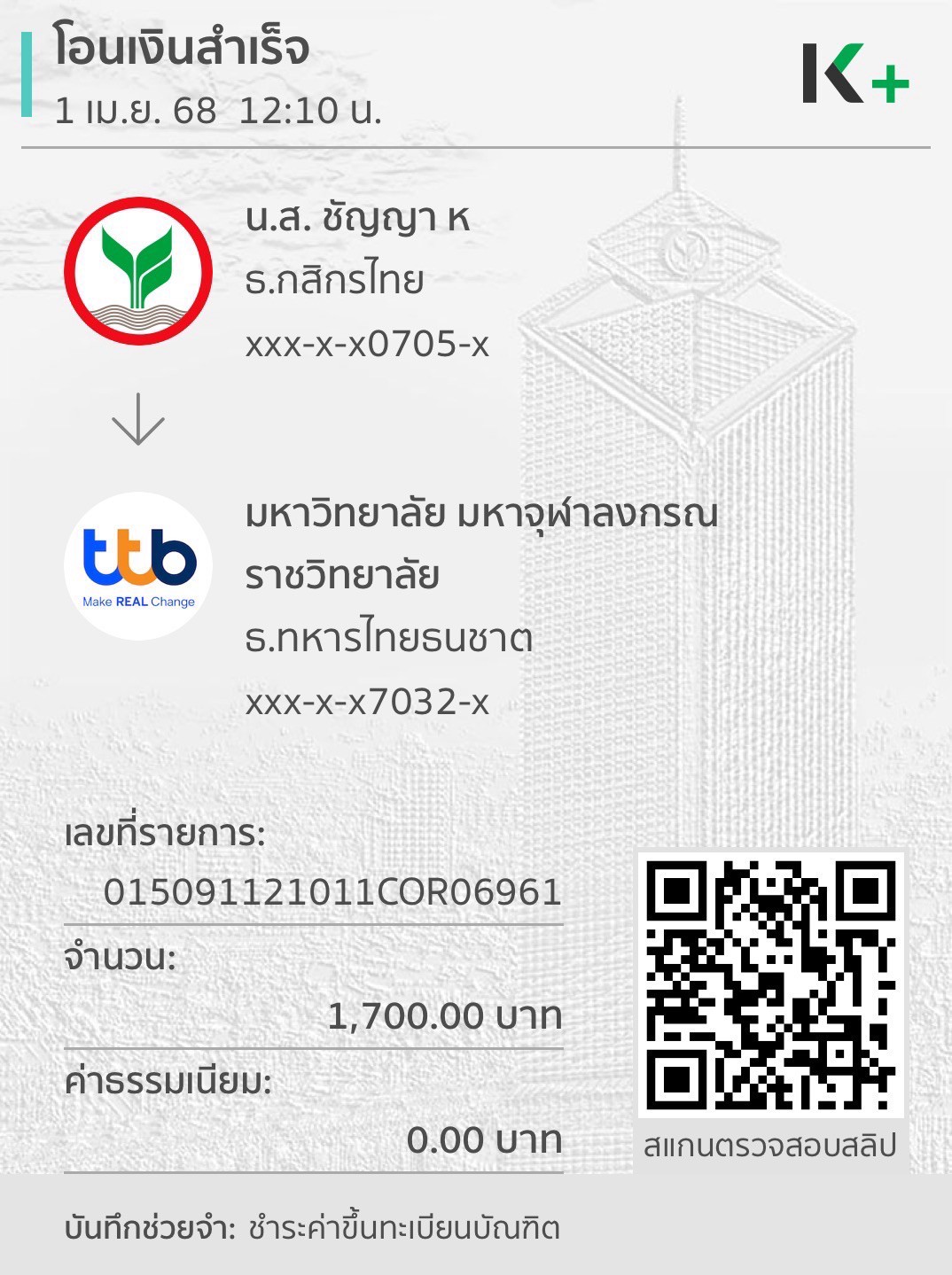 * เข้าพิธีประสาทปริญญาวันที่ 6 ธันวาคม 2568