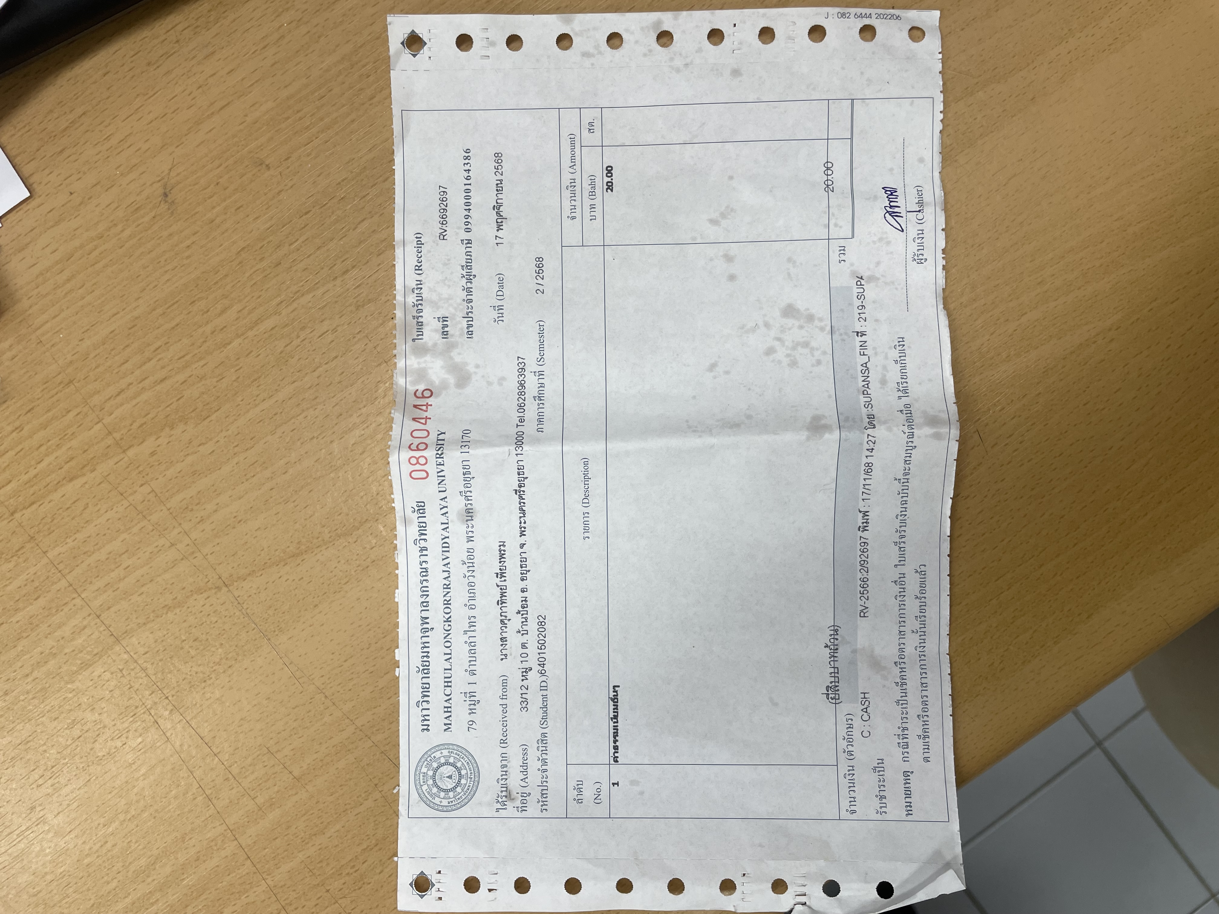 ใบเสร็จรับเงิน/เอกสารยืนยันการชำระเงิน(แนบเอกสาร)