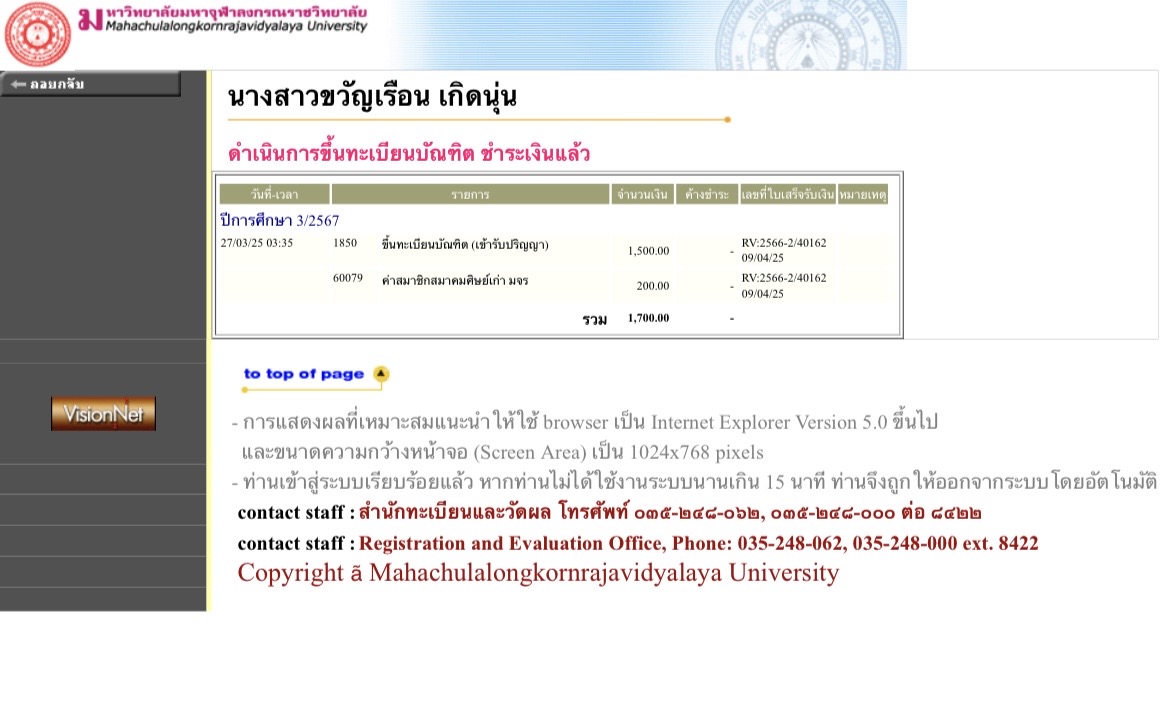 * เข้าพิธีประสาทปริญญาวันที่ 6 ธันวาคม 2568