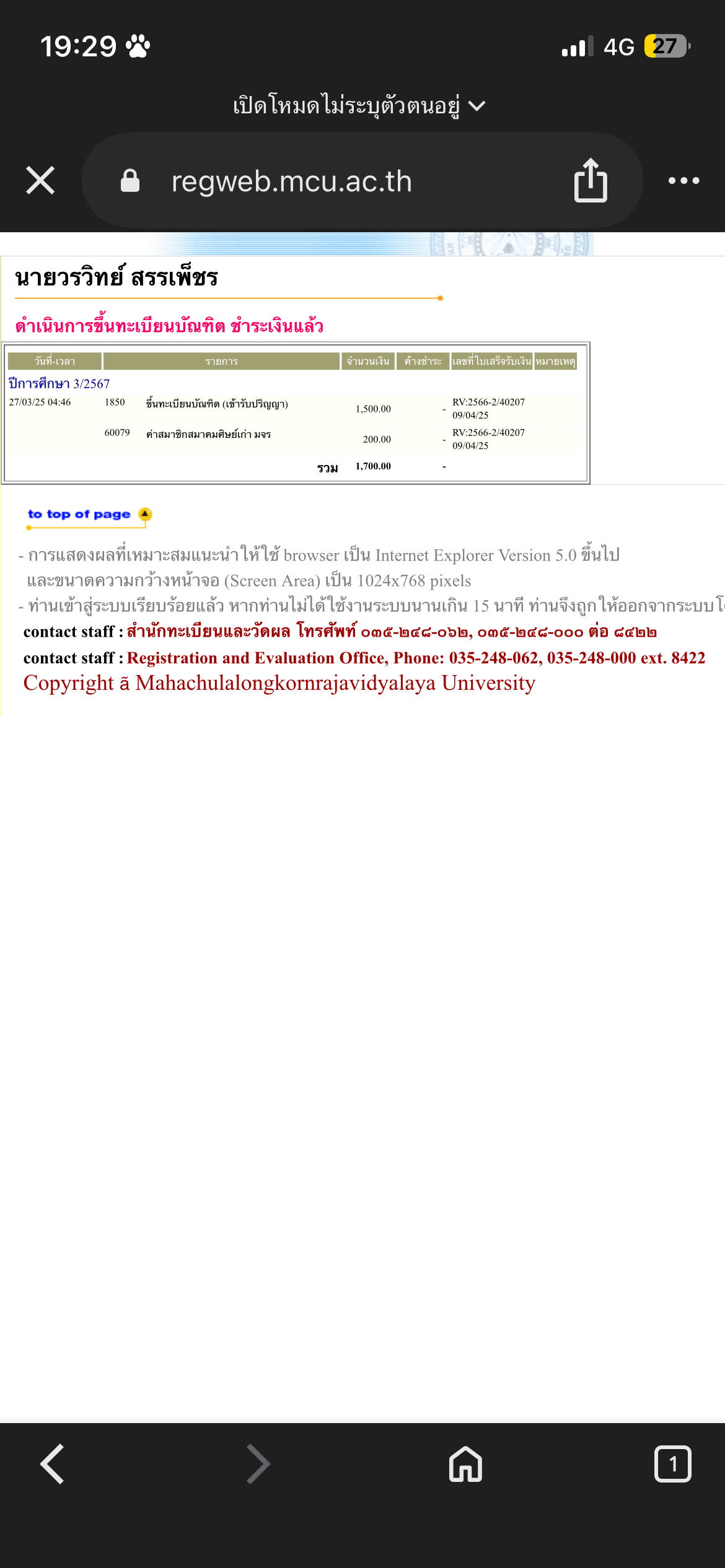 | รหัสนิสิต : 6403502113 | ชื่อ : นายวรวิทย์ | ฉายา: - | นามสกุล: สรรเพ็ชร |