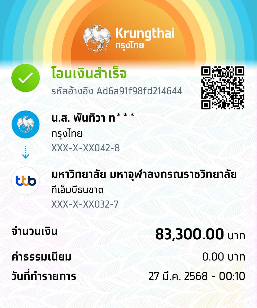 * เข้าพิธีประสาทปริญญาวันที่ 6 ธันวาคม 2568