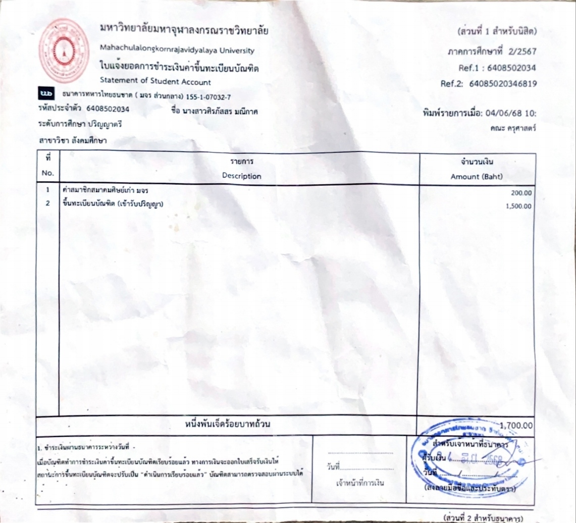 | รหัสนิสิต : 6408502034 | ชื่อ : นางสาวศิรภัสสร | ฉายา: - | นามสกุล: มณีกาศ |