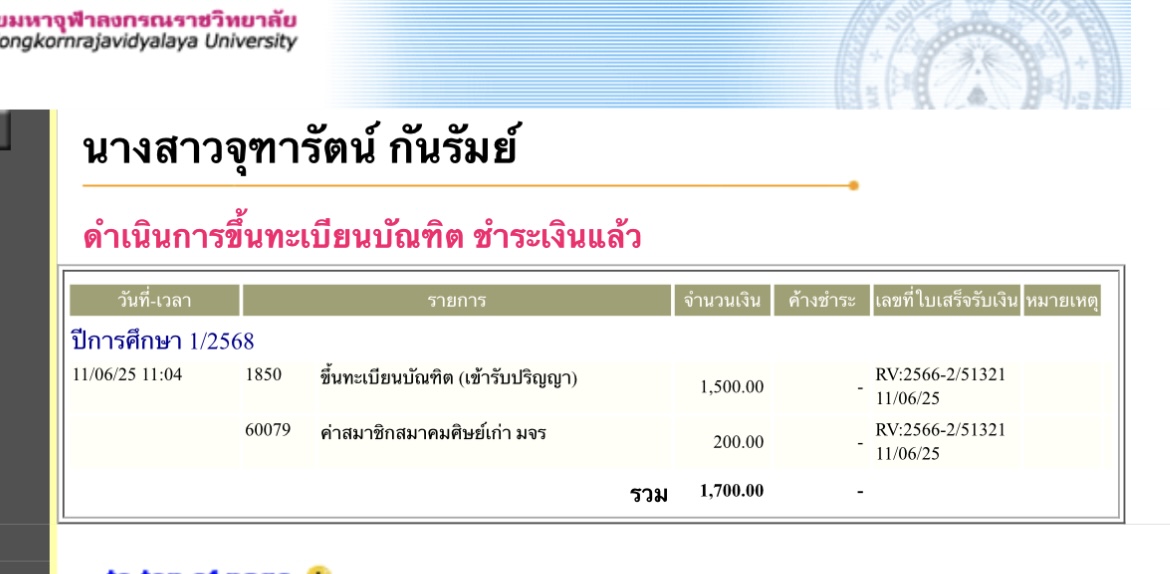 | รหัสนิสิต : 6418502030 | ชื่อ : นางสาวจุฑารัตน์ | ฉายา: - | นามสกุล: กันรัมย์ |