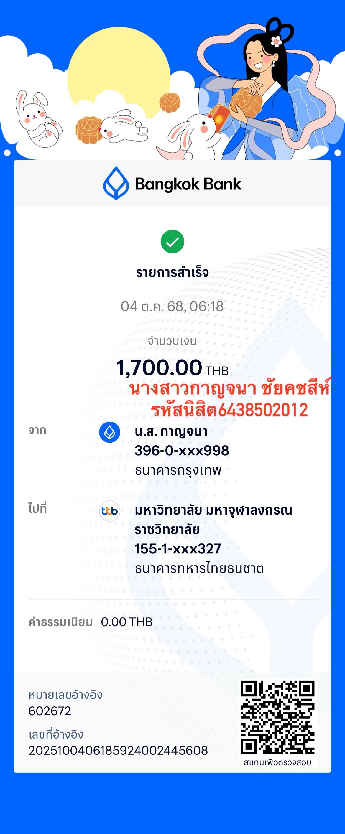 QR Code สำหรับสแกนเข้าร่วมพิธี * เข้าพิธีประสาทปริญญาวันที่ 6 ธันวาคม 2568 |