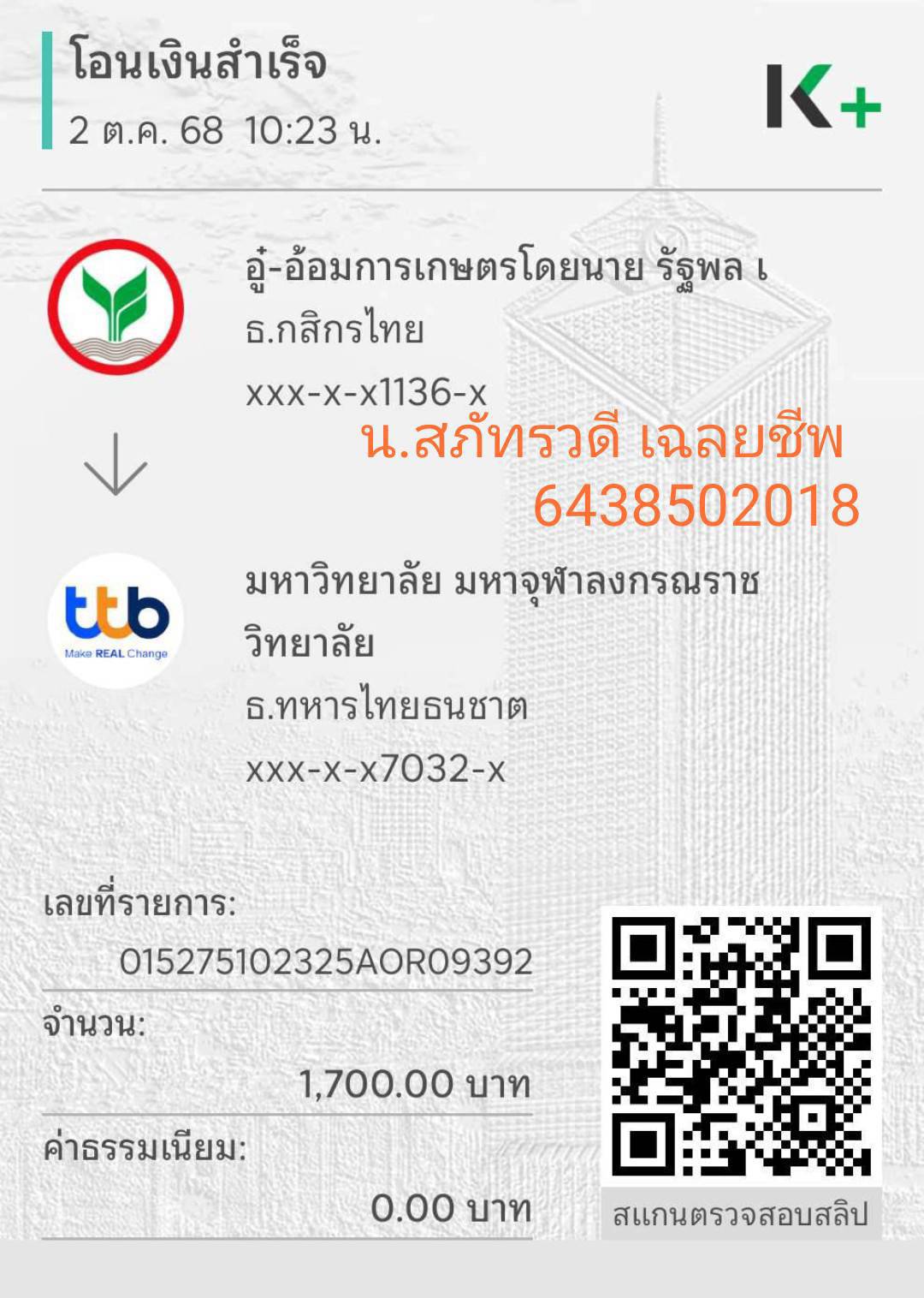 QR Code สำหรับสแกนเข้าร่วมพิธี