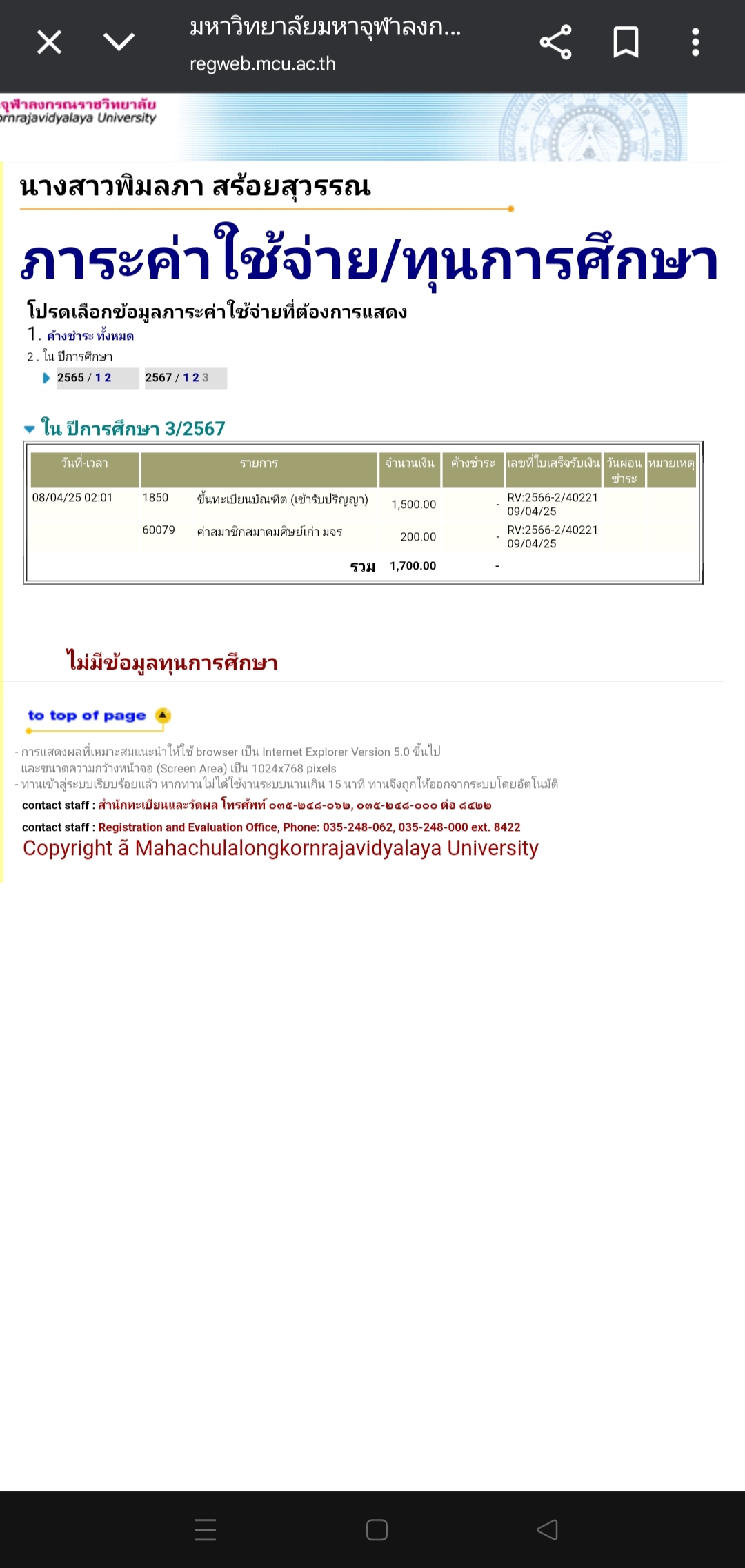 | รหัสนิสิต : 6453502008 | ชื่อ : นางสาวพิมลภา | ฉายา: - | นามสกุล: สร้อยสุวรรณ |