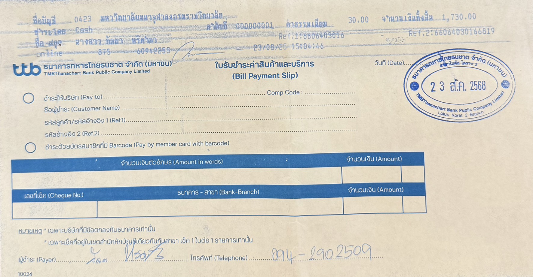 | ส่วนงานจัดการศึกษา : วิทยาเขตนครราชสีมา | |||