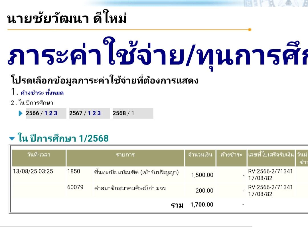 | รหัสนิสิต : 6606403006 | ชื่อ : นายชัยวัฒนา | ฉายา: - | นามสกุล: ดีใหม่ |