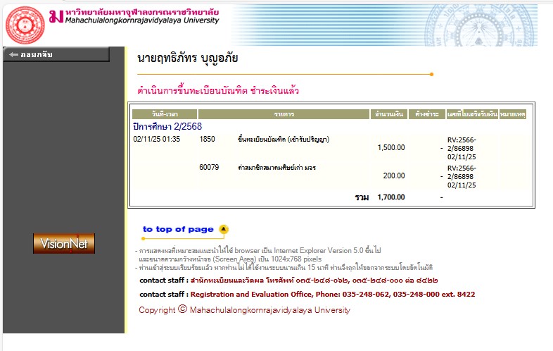 | สถานะเข้าพิธีประสาทปริญญา : คฤหัสถ์ | ระดับ : ปริญญาตรี | สังกัดคณะ: คณะสังคมศาสตร์ | สาขาวิชา: รัฐประศาสนศาสตรบัณฑิต |
