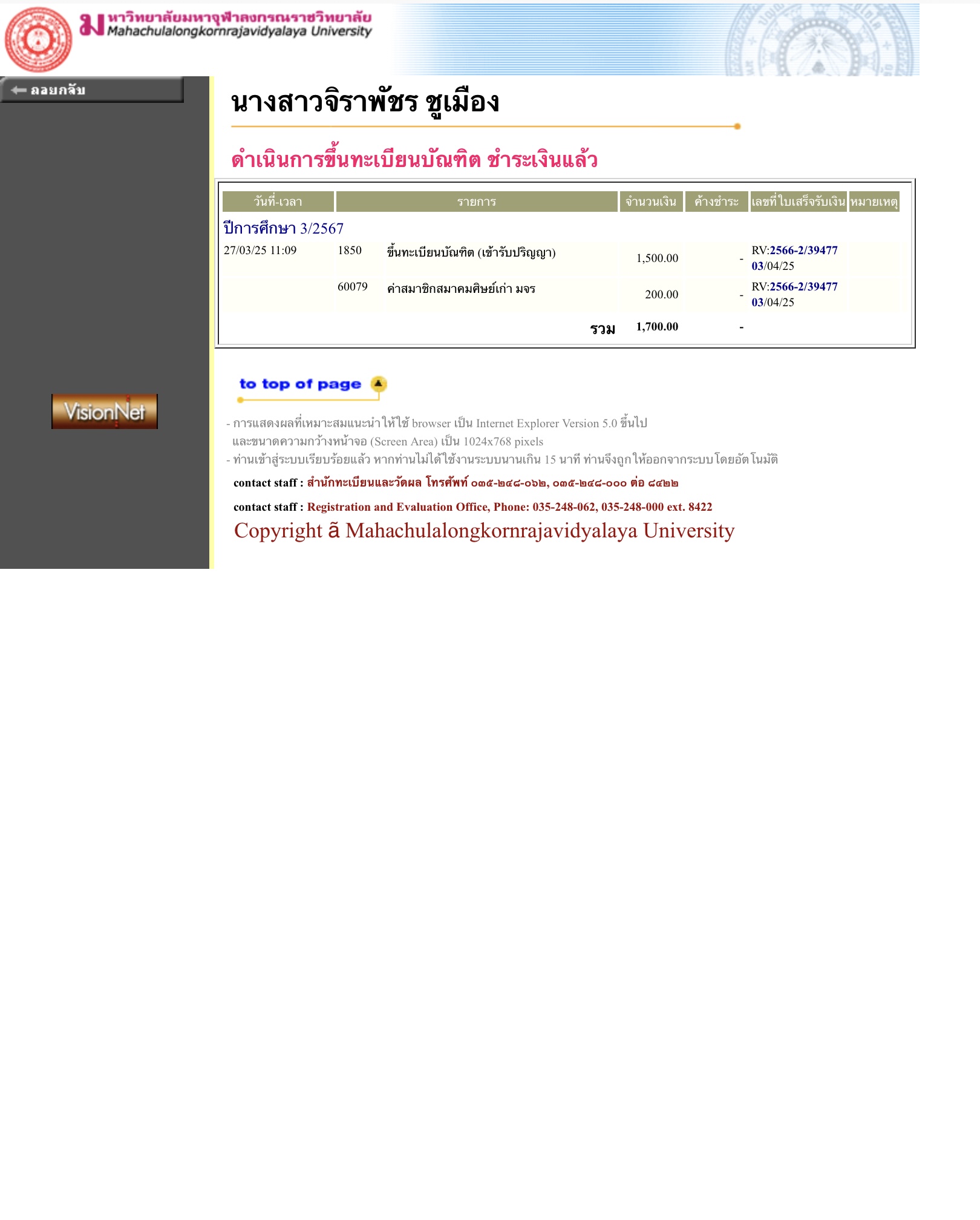 | สถานะเข้าพิธีประสาทปริญญา : คฤหัสถ์ | ระดับ : ปริญญาตรี | สังกัดคณะ: คณะสังคมศาสตร์ | สาขาวิชา: รัฐศาสตรบัณฑิต |