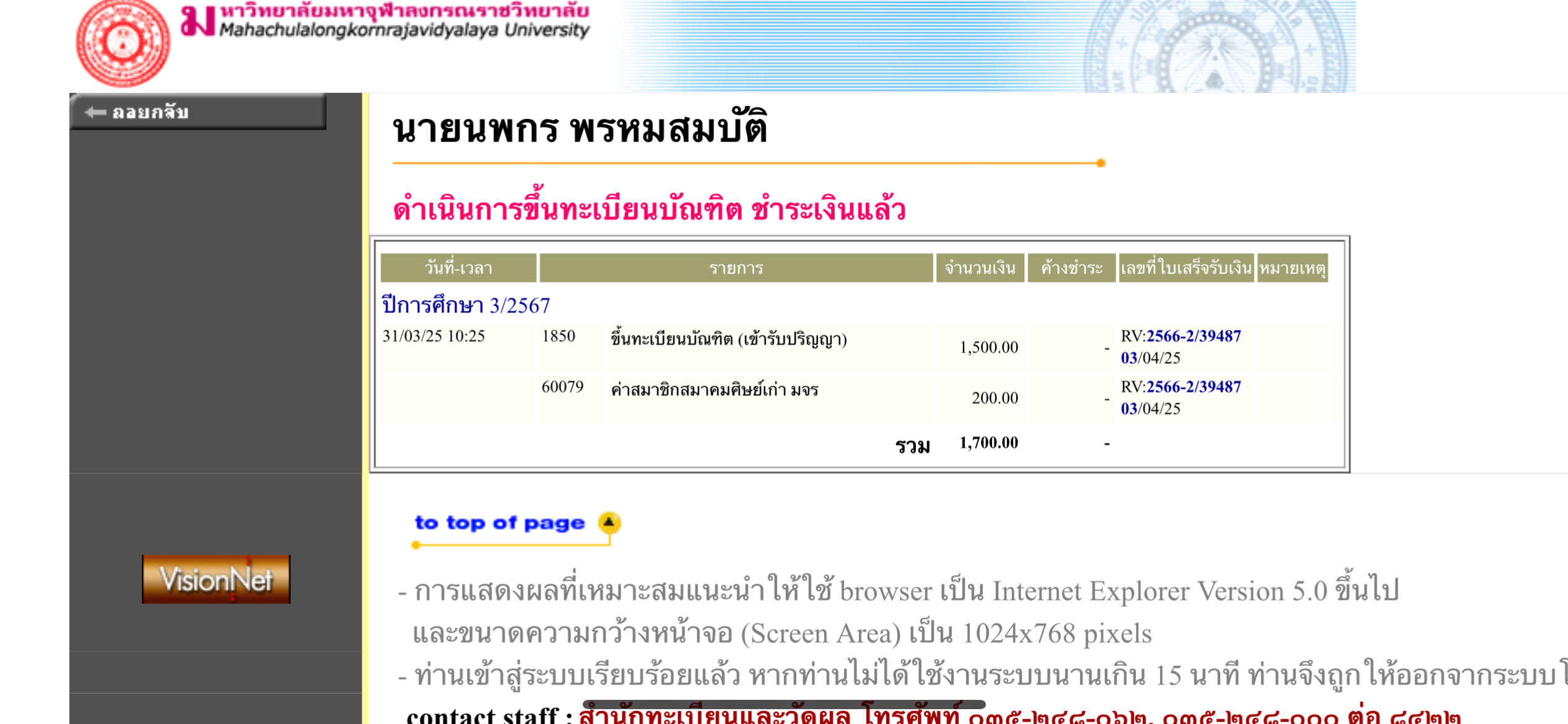 * เข้าพิธีประสาทปริญญาวันที่ 6 ธันวาคม 2568