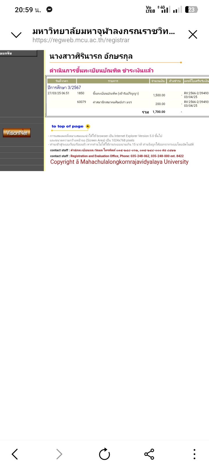 | รหัสนิสิต : 6403504323 | ชื่อ : นางสาวศิรินารถ | ฉายา: - | นามสกุล: อักษรกุล |