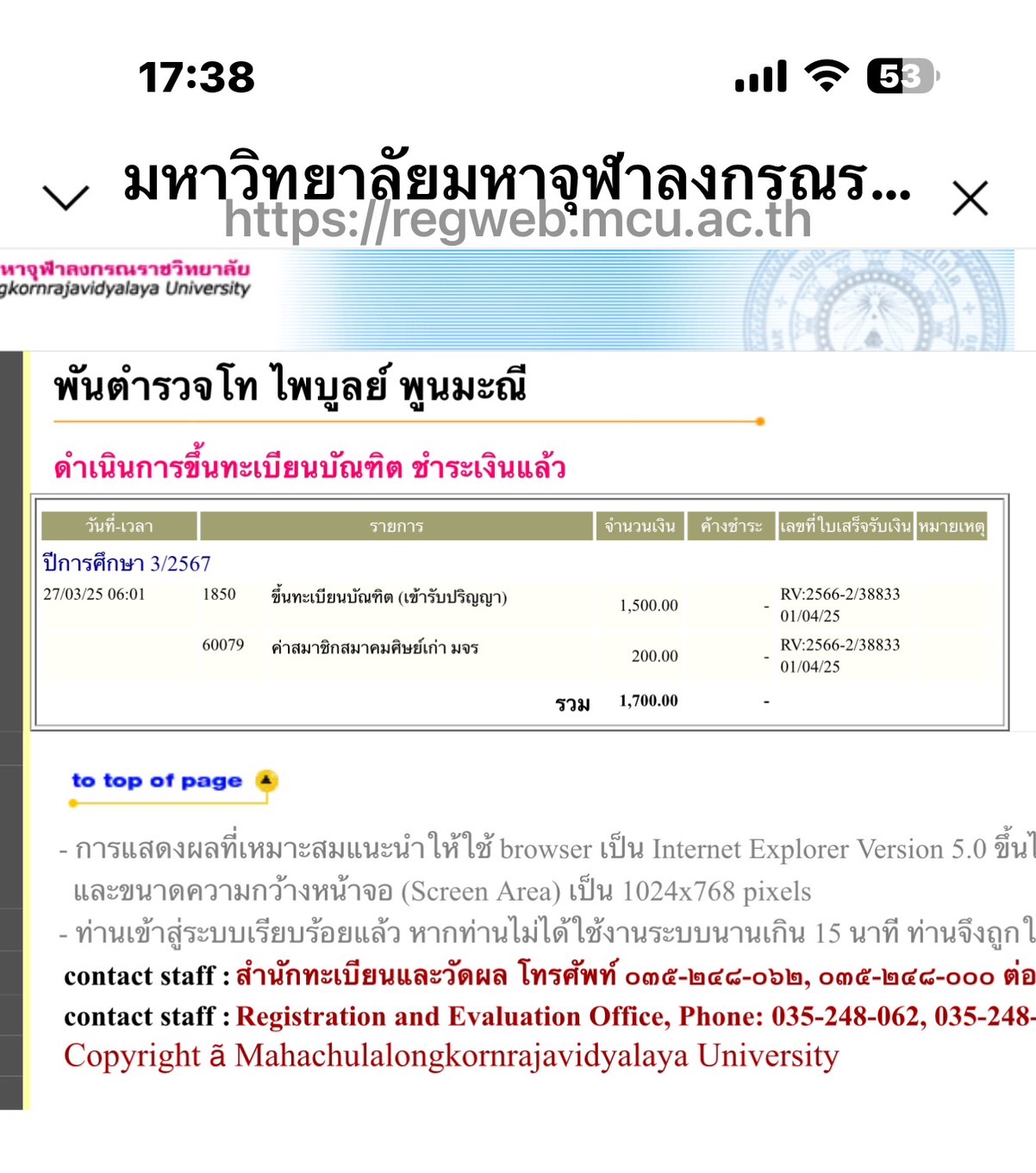 | รหัสนิสิต : 6503404736 | ชื่อ : พันตำรวจโท ไพบูลย์ | ฉายา: - | นามสกุล: พูนมะณี |
