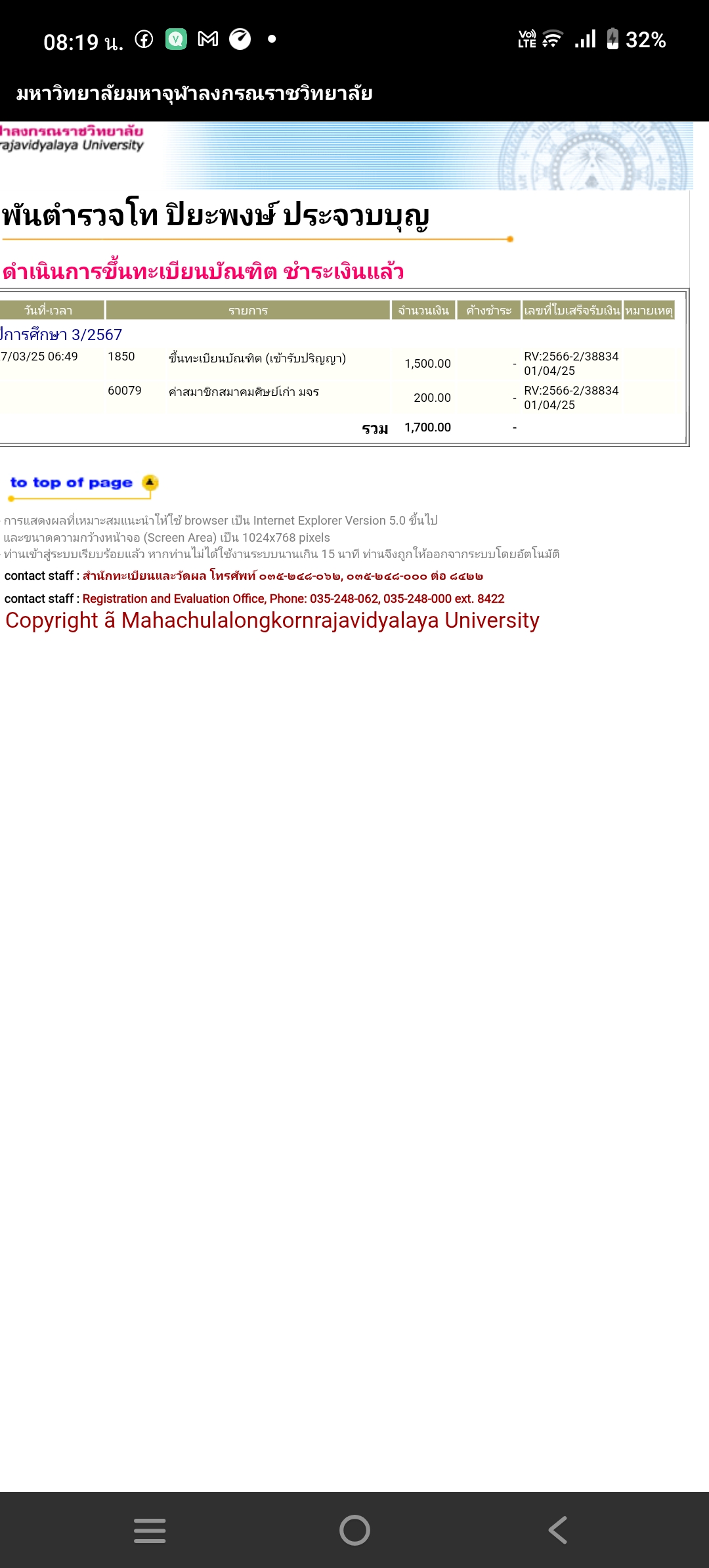 * เข้าพิธีประสาทปริญญาวันที่ 6 ธันวาคม 2568
