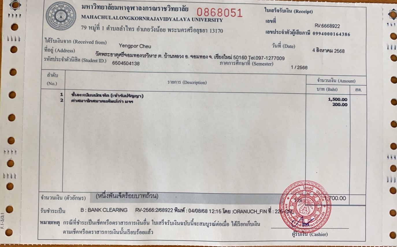| รหัสนิสิต : 6504504138 | ชื่อ : Yengpor Cheu | ฉายา: - | นามสกุล: - |