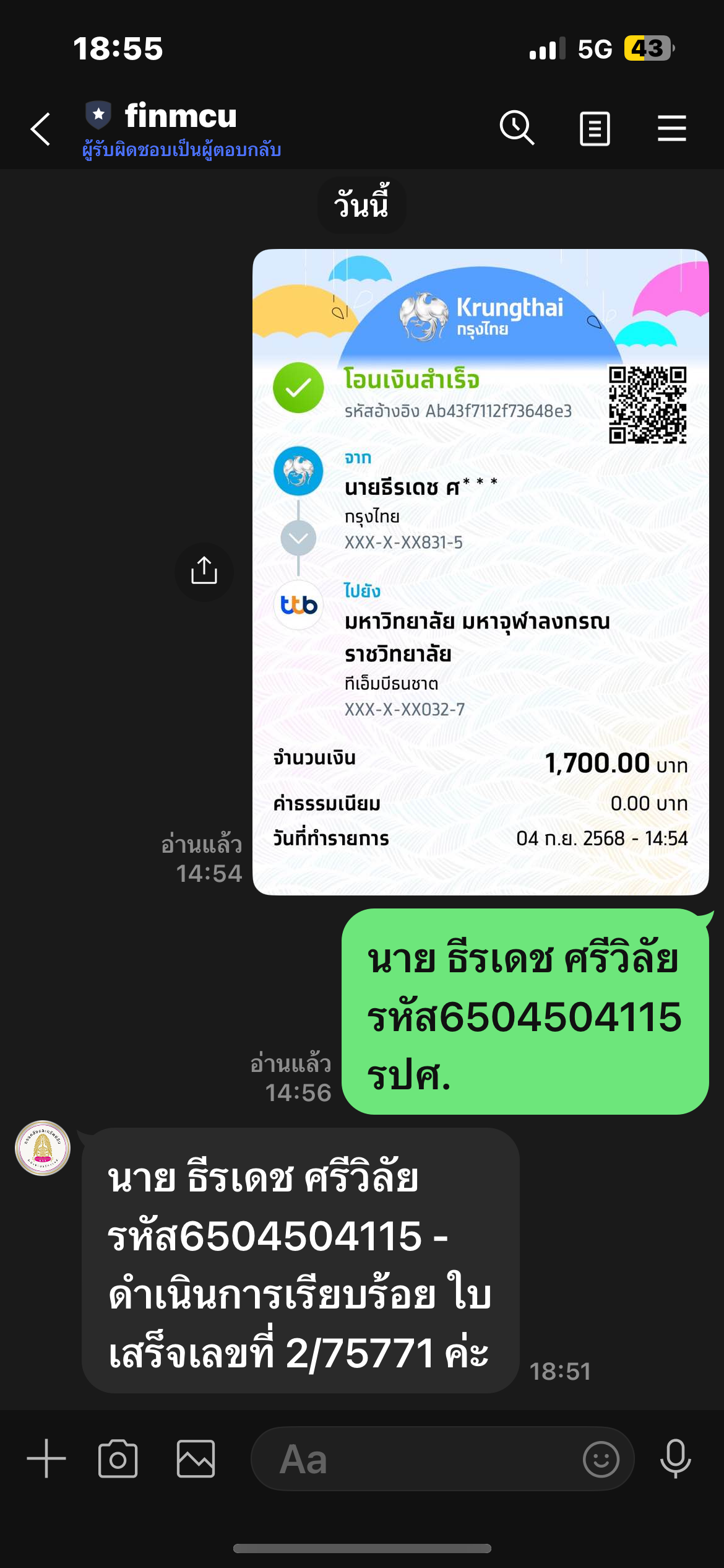 | รหัสนิสิต : 6504504115 | ชื่อ : นายธีรเดช | ฉายา: - | นามสกุล: ศรีวิลัย |